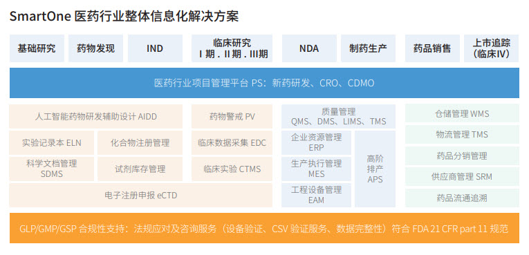 我們?yōu)槿虻纳镝t(yī)藥公司提供醫(yī)藥行業(yè)從研發(fā)到生產(chǎn)的整體信息化解決方案,基于公司自主研發(fā)產(chǎn)品“一智通SmartOne”。幫助生物醫(yī)藥公司實(shí)現(xiàn)數(shù)字化轉(zhuǎn)型,降低成本、保障品質(zhì)、提高效率。